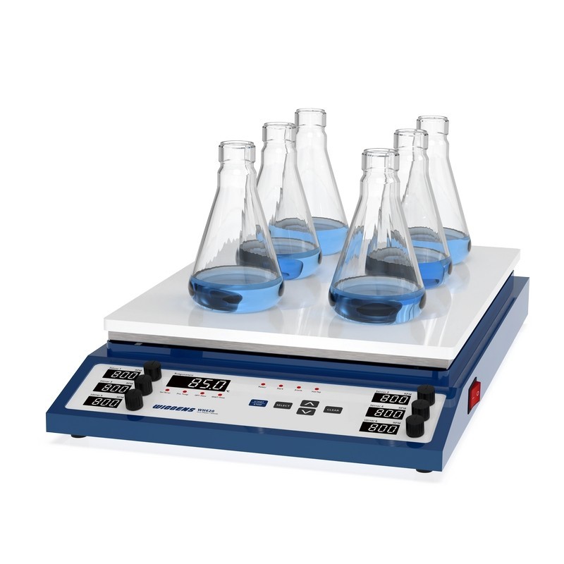 WIGGENS WH620多位加热磁力搅拌器,6位设计,适用于批量样品处理,提供稳定可靠的加热搅拌性能。